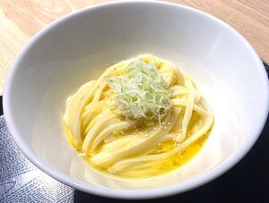 濃厚な旨味の白老産卵でいただくうどんです。